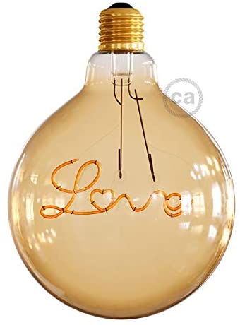 DAYLIGHT Lampadina E27 Filamento Led Scritta LOVE CUORE 5W Globo G125 Vetro Ambrato Dimmerabile