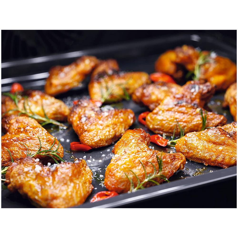 Il forno a convezione 300 si scalda più velocemente rispetto ai forni tradizionali. La ventola distribuisce il calore in tutto il forno, permettendo ai tuoi piatti di cuocere più velocemente e uniformemente. Adesso potrai cuocere biscotti perfetti senza doverli girare a metà cottura. AquaClean fa evaporare l’acqua nel fondo del forno e il vapore scioglie il grasso ostinato e i residui lasciati sulle sue superfici. In questo modo potrai ottenere facilmente una pulizia naturale. Il nostro contaminuti ti aiuta a tenere sotto controllo le tue ricette. Basta impostare il timer e ti avviserà allo scadere del tempo, perché anche un minuto può fare la differenza. Dalla pancetta croccante alla mozzarella dorata, ottieni di più dal metodo di cottura grill. Perfetto per cucinare ali di pollo croccanti o per formaggi che si sciolgono in bocca. Grazie alla teglia XL puoi cucinare quantità maggiori in una sola volta, aumentando la portata delle tue golose creazioni. Classe energetica: A. Dimensioni prodotto (L x P x A) : 589 x 568 x 594 mm. Colore Nero.