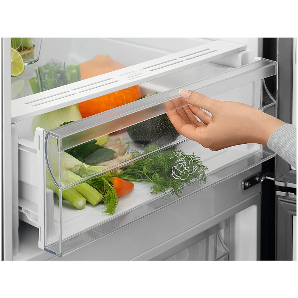 Due sistemi di raffreddamento separati e indipendenti tra frigorifero e congelatore garantiscono livelli di temperatura e umidità stabili e ottimali, consentendo di preservare gusto, consistenza e freschezza degli alimenti più a lungo e 60% in meno di perdita di peso. Il cibo si mantiene al meglio con MultiFlow. La tecnologia mantiene una temperatura stabile all’interno del tuo frigorifero, evitando che i tuoi ingredienti si secchino. Creando anche un ambiente che mantiene il cibo delizioso, fino alla tua prossima spesa. L’aspetto elegante del frigorifero si integra perfettamente nelle cucine moderne. Linee pulite e design piatto, risulterà a filo con gli altri elettrodomestici e ai piani di lavoro della cucina. Per completare l’aspetto elegante, le maniglie sono nascoste alla vista nella parte inferiore della porta. Grazie al nostro casetto dotato di controllo dell’umidità, avrai sempre dell’ottima verdura. Regolando l’umidità dell’aria, crea l’ambiente migliore per la conservazione degli alimenti. La chiusura dei punti di areazione crea lo spazio ideale per la conservazione di erbe e verdure a foglia larga, metre l’apertura di punti di areazione offre il massimo spazio. Grazie ai comandi elettronici Dual Touch non avrai più dubbi sulle impostazioni del frigo. Con un semplice tocco, puoi controllare svariate funzioni e configurare le impostazioni precise sia per il frigo sia per il congelatore. Classe energetica: F. Dimensioni prodotto (L x P x A) : 595 x 650 x 1860 mm. Colore: Inox.