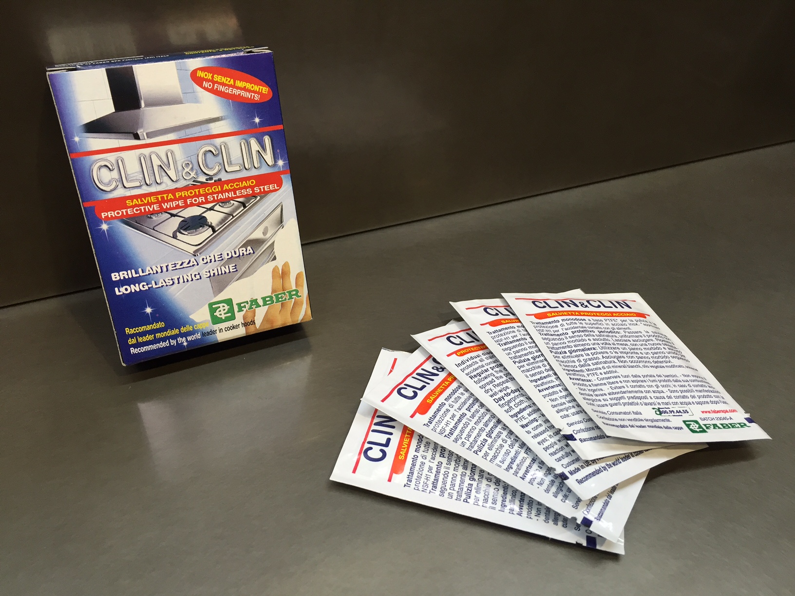 Passare la speciale spugna inumidita più volte sulla Pasta Inox Franke e pulire la superficie interessata.