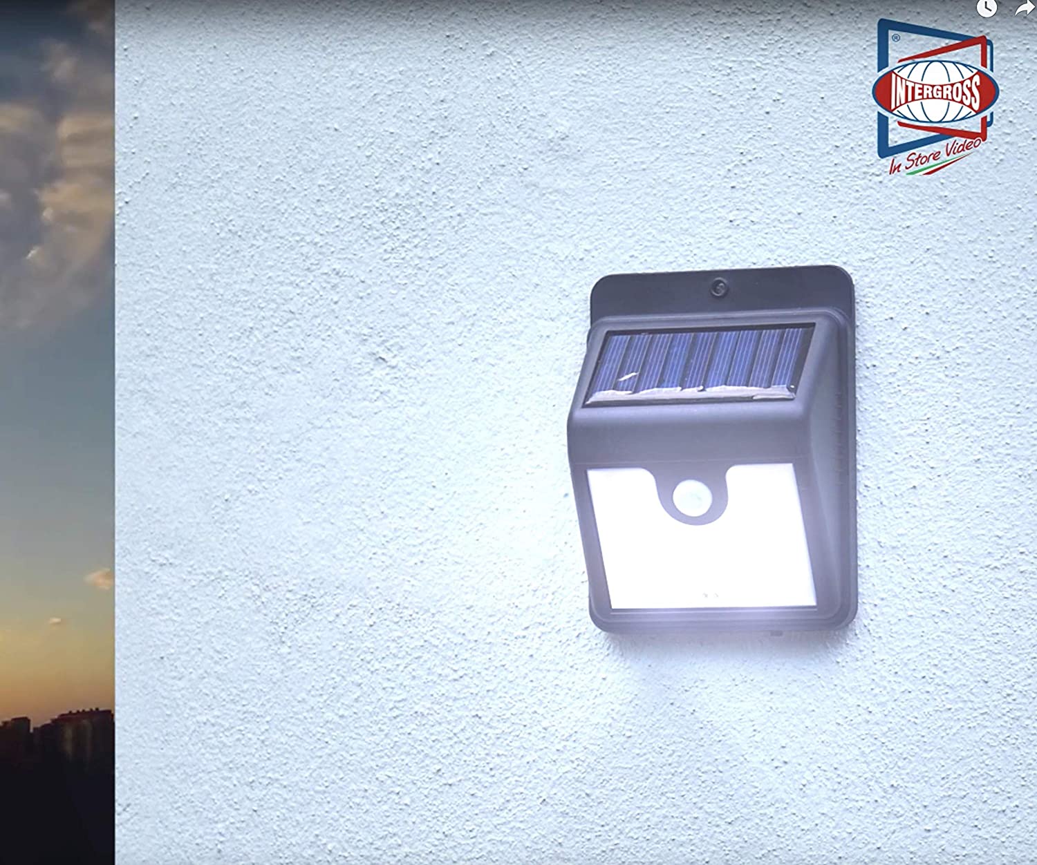 INTERGROSS SUNNY LIGHT Lampada Led per Esterno IP44 con Pannello Solare e Sensore di Movimento