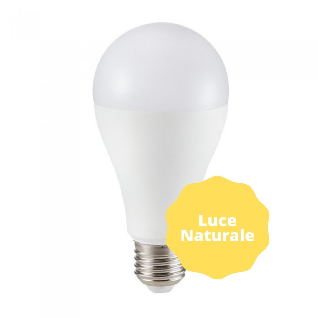 Lampadina LED V-Tac PRO VT-217 con potenza di 17W e attacco E27. Lampadina con tecnologia LED SMD con chip Samsung, forma Bulb A66 in materiale termoplastico e copertura opaca. Fascio luminoso di 200°, flusso luminoso di 1521 lm e un rapporto di 89 lm/W. La potenza di 17W è equivalente a 100W di una lampadina a incandescenza.