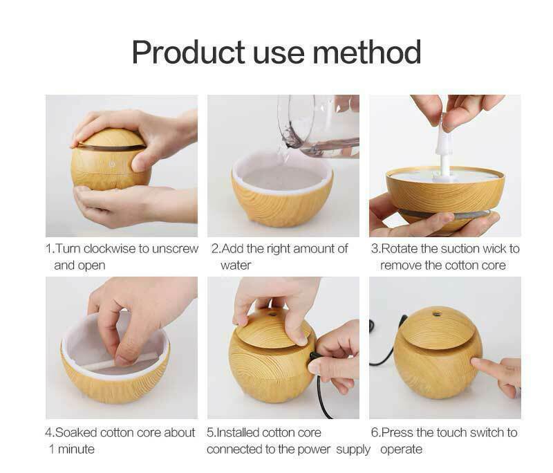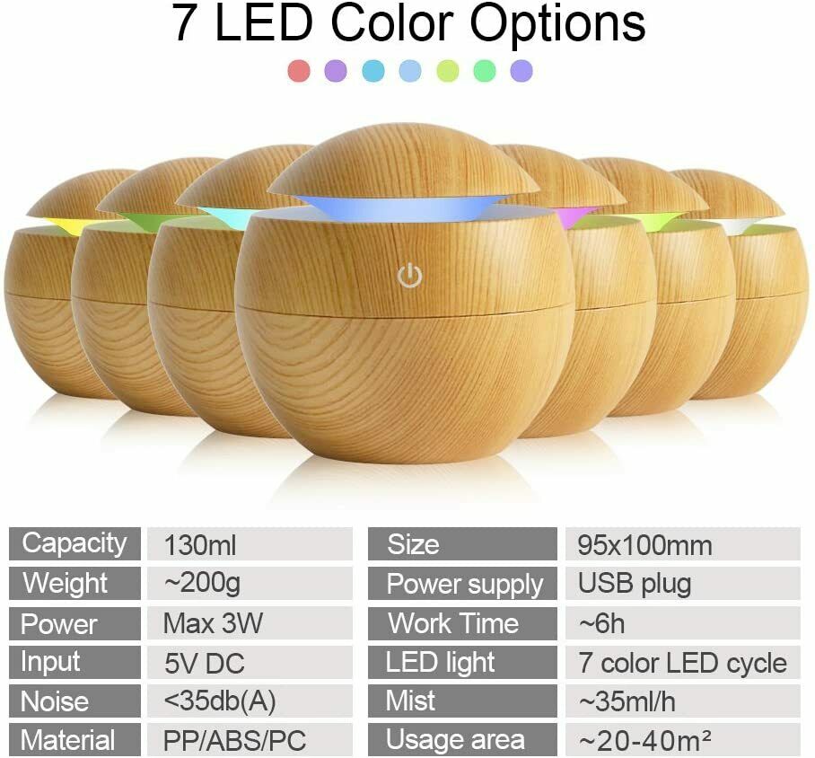 Diffusore di aromi è una grande aggiunta al tuo spazio di lavoro o casa. Il suo aspetto naturale e di classe si abbina a tutto l’arredamento. 7 luce cangiante: il diffusore è dotato di 7 colori di illuminazione. Puoi mantenerli in rotazione o correggere una delle tue scelte. Ogni colore è regolabile tra luminoso e fioco. Fa una luce notturna perfetta per le camere da letto.
