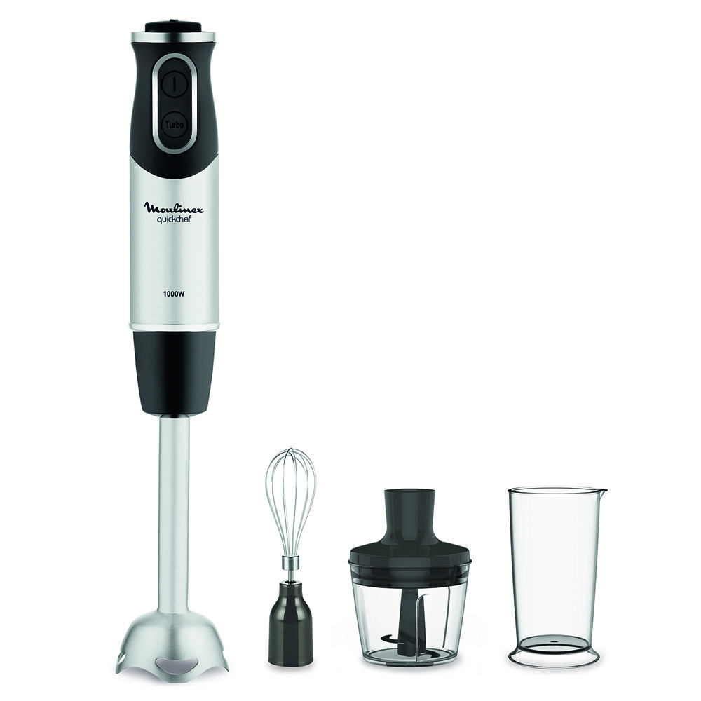 Potenza ottimale senza alcuna fatica! Con il frullatore ad immersione Quickchef di Moulinex, godi di alte prestazioni e controllo totale grazie alla Powelix Technology e alle sue lame combinate con il motore da 1000 W che amplificano la potenza raggiungendo risultati perfetti ogni volta. Questa tecnologia assicura una incredibile cremosità in poco tempo, anche con gli ingredienti più difficili! In più, le 10 velocità possono essere regolate senza arrestare la macchina mediante un quadro di comandi intuitivo e facile da usare. Il mixer beneficia anche di pratiche caratteristiche che include una protezione antischizzi, un’impugnatura antiscivolo per un maggiore comfort d’uso e le componenti lavabili in lavastoviglie per una facile pulizia. A completamento, vengono forniti un bicchiere da 800 ml, un tritatutto da 500 ml per sminuzzare facilmente vari ingredienti e una frusta per sbattere senza fatica.