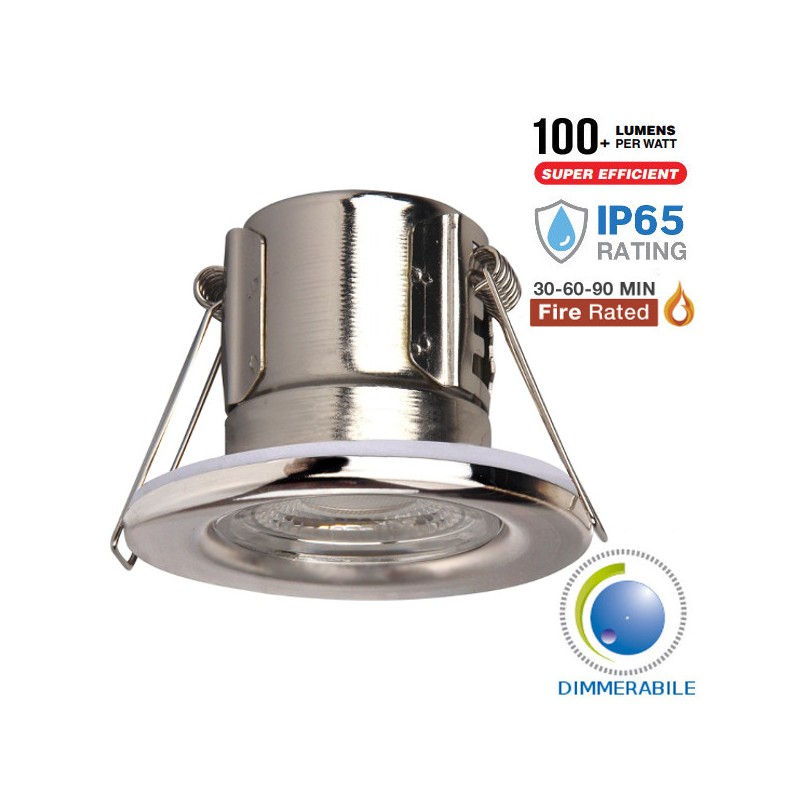 Faretto LED da incasso V-Tac PRO VT-885 con potenza di 5W. Forma rotonda in metallo colore cromo. Equipaggiato con tecnologia LED SMD e Chip Samsung, con copertura satinata antiabbagliamento. Realizzato con materiali ignifughi (resiste al fuoco fino a 90 minuti) e dotato di grado di protezione IP65 (può essere installato anche in luoghi molto umidi o con presenza di acqua). Fascio luminoso di 70° e flusso luminoso di 500 lm. Questo faretto ad alta luminosità ha un rapporto di 100 lm/W.