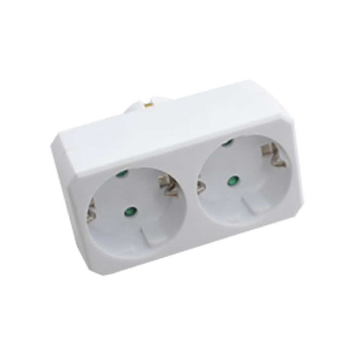 V-Tac Adattatore Doppio VT-1006 da 2 posti, in materiale plastico di colore bianco. La spina dell’adattatore, è di tipo Schuko 16A 2P+T, mentre le prese collegabili sono di tipo: 2x Schuko.